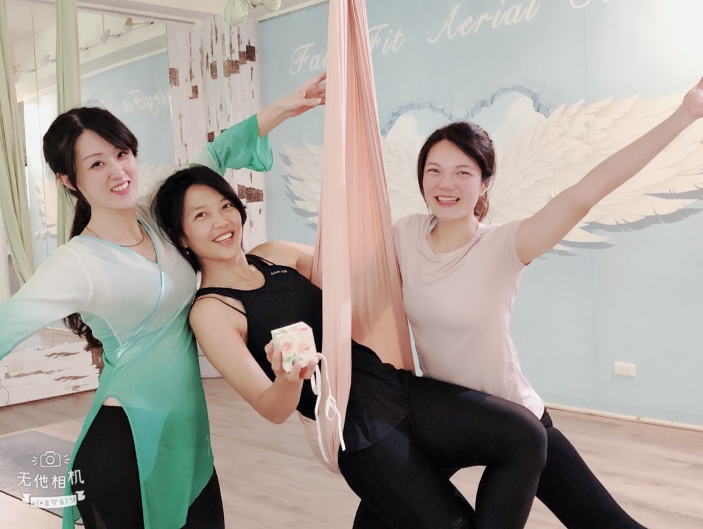 Aerial Yoga。與其說空中瑜珈是一個流派,不如說它的一個很大的體系或者分支。Emily老師說也可以想成是太陽馬戲團的綢緞,為了讓大家更安全而改良成可以包覆自己的版本,在Emily老師的課裡面,很明顯學習到「放鬆」的重要,老師先讓我們在教室走,找到自己的呼吸和步調,現代生活太忙碌以至於常常忘記去聽自己內心的聲音,在空瑜的訓練過程中,我們慢慢找到力與美的和諧,非常感謝Emily,希望未來還有機會能上老師的課。